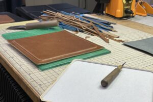 レザーマウスパッドの製作風景